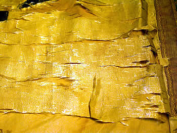 Vorgefundene alte maschinell ausgeführte Reparaturen wurden, da bei Demontage die Gefahr von Substanzverlust gegeben, nicht demontiert. Die Fixierungen erzeugten auch keine zusätzlichen Spannungen.